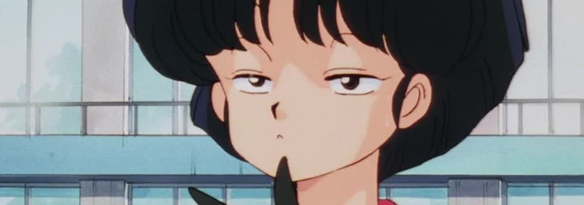Stuck in the middle of a fight between Ranma and Ryoga, Akane's long hair is chopped off by Ryoga's bandana sword.
