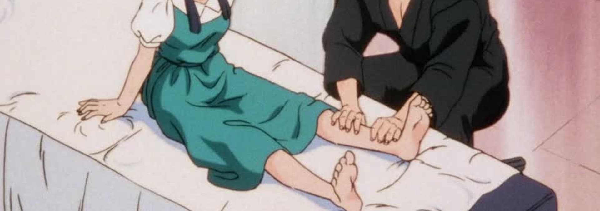 The great Dr. Tofu is tending to Ranma's wounds when Kasumi stops by. The second Dr. Tofu lays eyes on her, he is unable to contain himself.