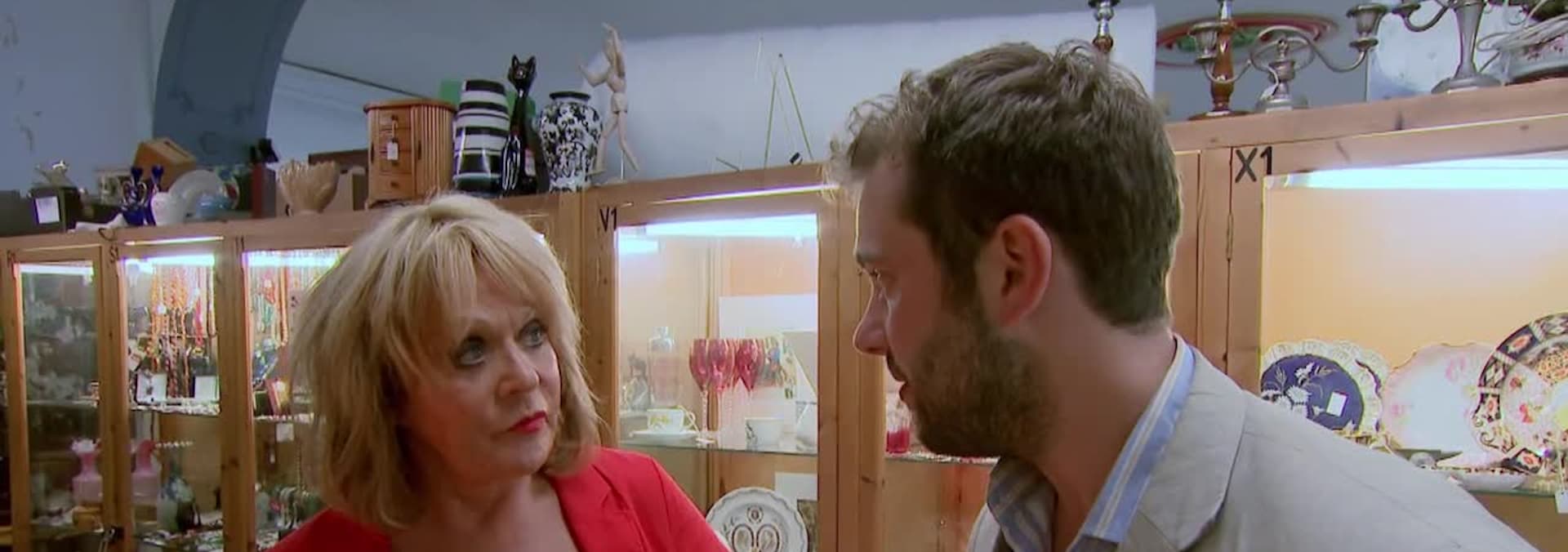 Today’s antique shopping stars are sitcom actors Sherrie Hewson and Tony Maudsley. Hoping to get lucky in Leicestershire are dealer Roo Irvine and auctioneer Tim Medhurst.