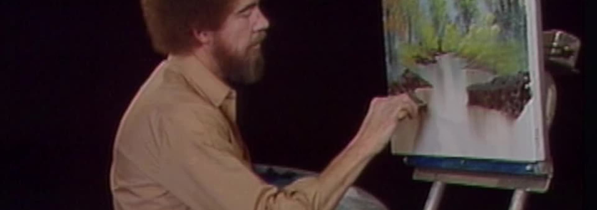 Toma una relajante caminata con Bob Ross a través de un brillante bosque verde, donde fluye un cristalino canal, tan pacifico.