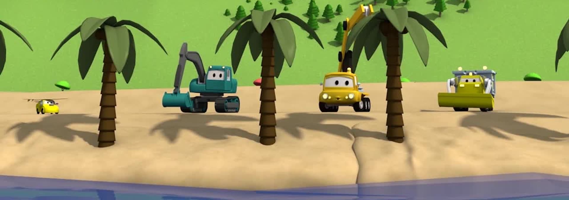 El Equipo de Camiones: Ethan el camión volquete, Edgar la excavadora y Charlie la grúa son los ingeniosos miembros del Equipo Constructor!
