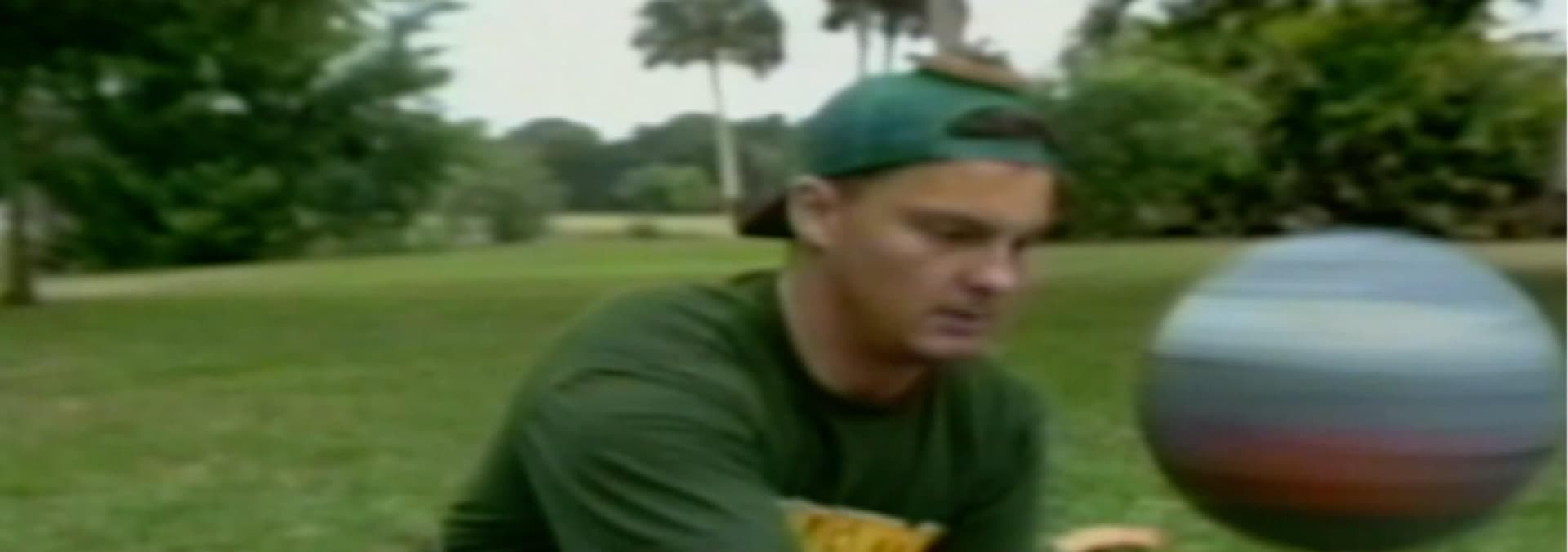Man hit by ball batting cage, football player knocks down camera, dog knocks over boy playing tee ball, hockey goalie cat.