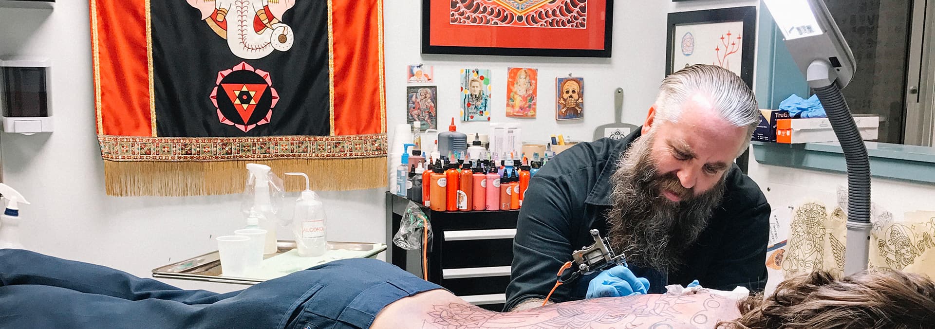 Fusing American Traditional and Hare Krishna icons, Robert Ryan’s tattoos are simply powerful. His spirituality informs his life as a tattooer, painter and musician.