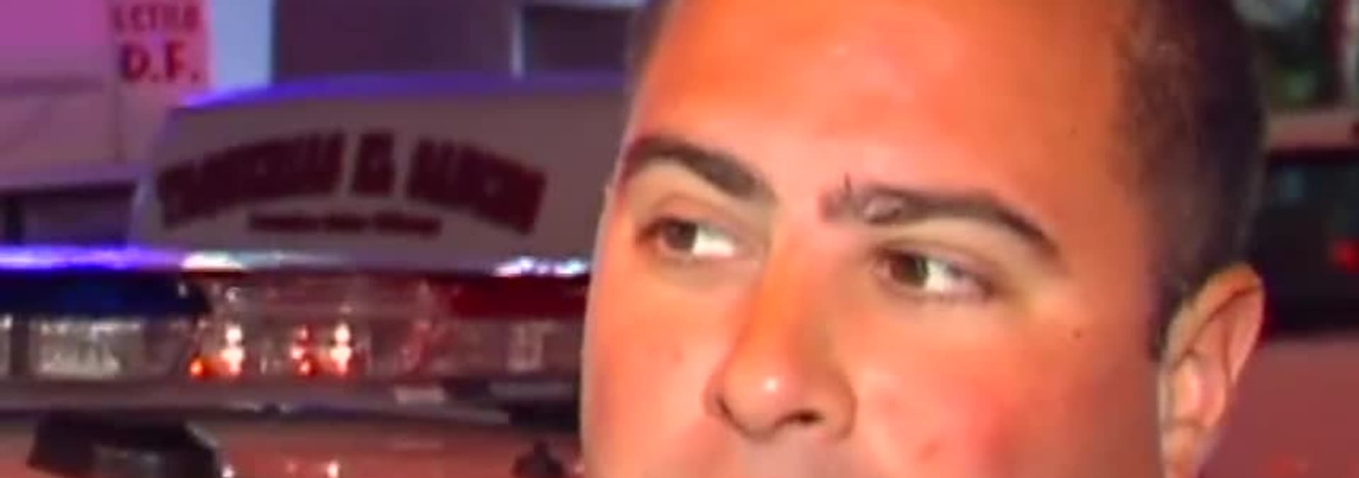 Nuestro corresponsal Tino se dirige hacia un impactante edificio en llamas en la ciudad de Hollywood100