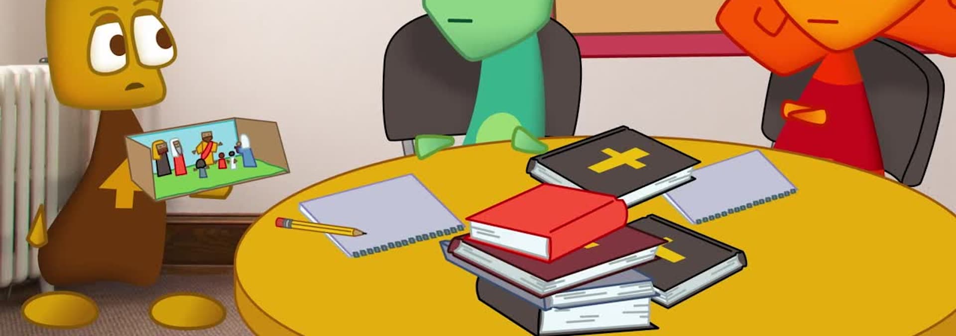 Bell Tower Council (Provide) / Unfair Fair (Grace) / Disposal Proposal (Anoint) / Conspiracy and Biscuits (Suffering) / Big Question (Almighty) Easter (Risen)