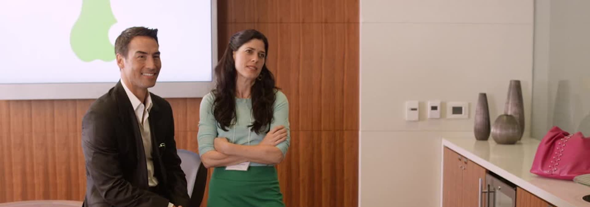 Maggie makes a decision about working with Roger; an oddball creative team helps out on the Pear pitch; over-worked account executive Caitlin ponders the future.