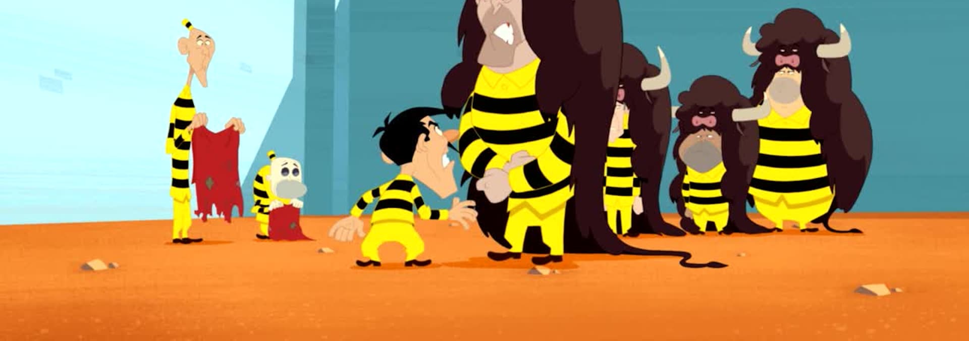 A chimp sneaks into the penitentiary. In the yard, he spots a "cage", the Daltons’ temporary cell. The chimp snaps the lock open in one move.