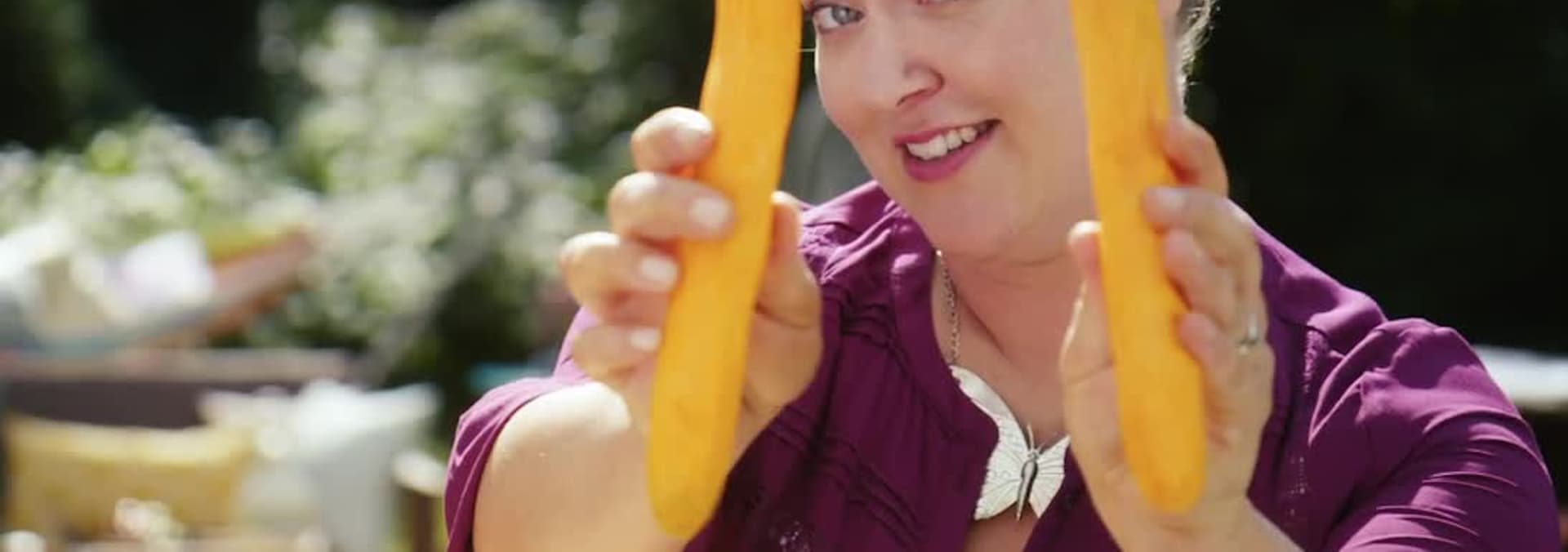 Warm host Amanda Herrera picks up colourful produce and herbs at a farmers’ market to make a delicious appetizer and tasty cold oil French fries.