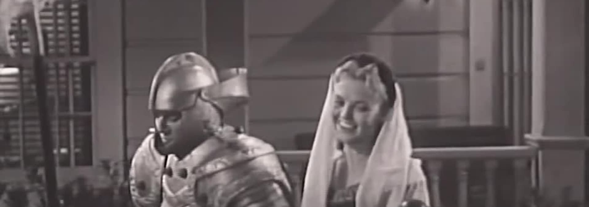 While dressed as a knight to go to a masquerade party with Corliss, Dexter falls and gets stuck in the armor.