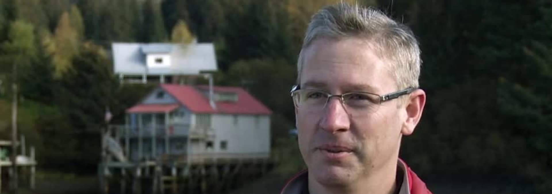 A couple fly over the town of Seldovia to find a private home.