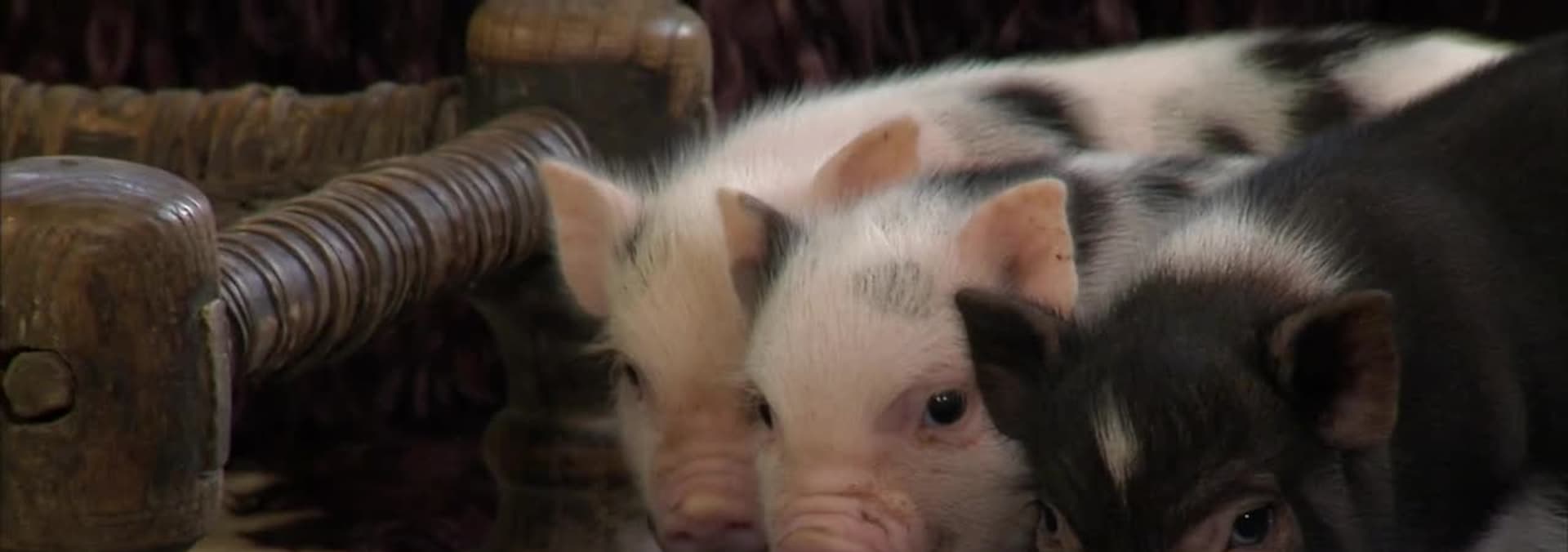 Little piggies befriend the family dog. Mini lop rabbits run circles.