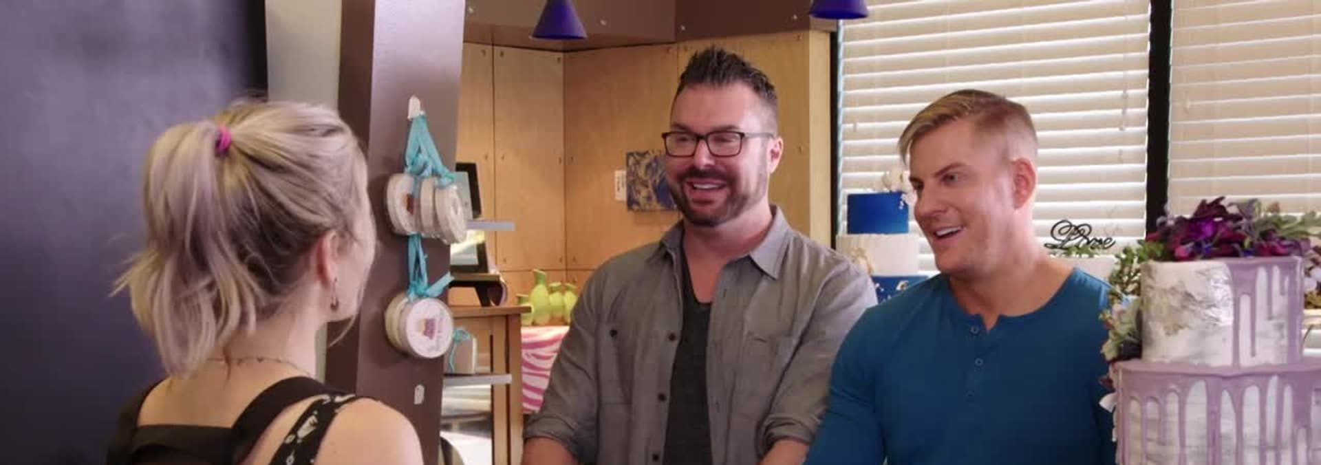 A couple searches for an over-the-top cake for their wine cellar wedding.