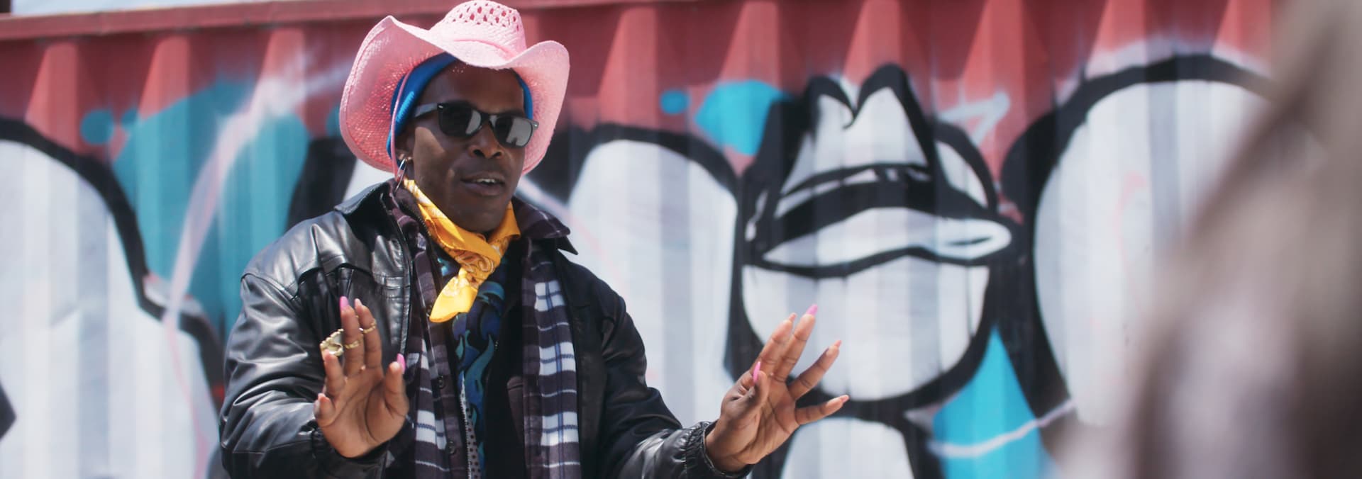Mani and friends teach Brittany how to throw hands and look fly for the party. Ms. Jacobs closes in.